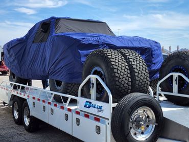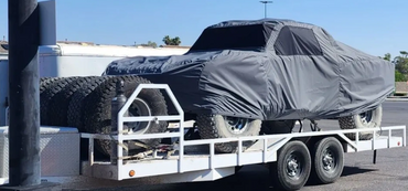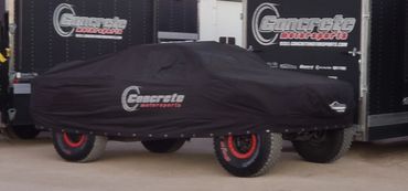 RACEWRAPS are made out of Antimicrobial, Durable water Repellent, Urethane coated, solution-dyed polyester and lined with Nylon Pack Cloth material. We use seatbelt grade webbing along the bottom edge of the cover and grommets every 12" to secure the wrap while in motion. Zipper Windows, Team Logos and Lockstraps are available for an additional fee. Call us or email us for a quote.